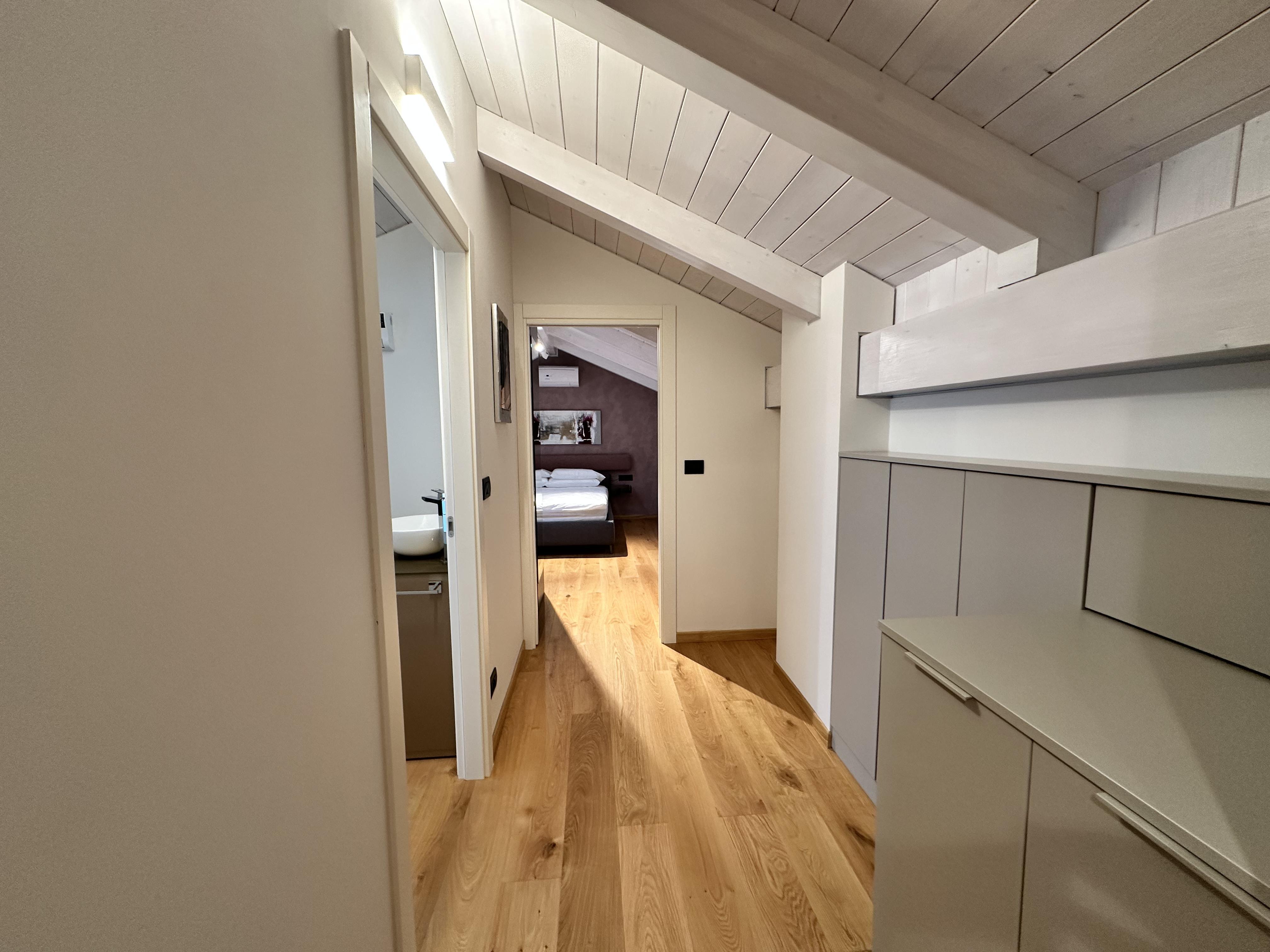 Bilocale mansardato di circa sessanta metri quadrati, dotato di camera matrimoniale, bagno e soggiorno con cucina a vista. Per un massimo di quattro ospiti.