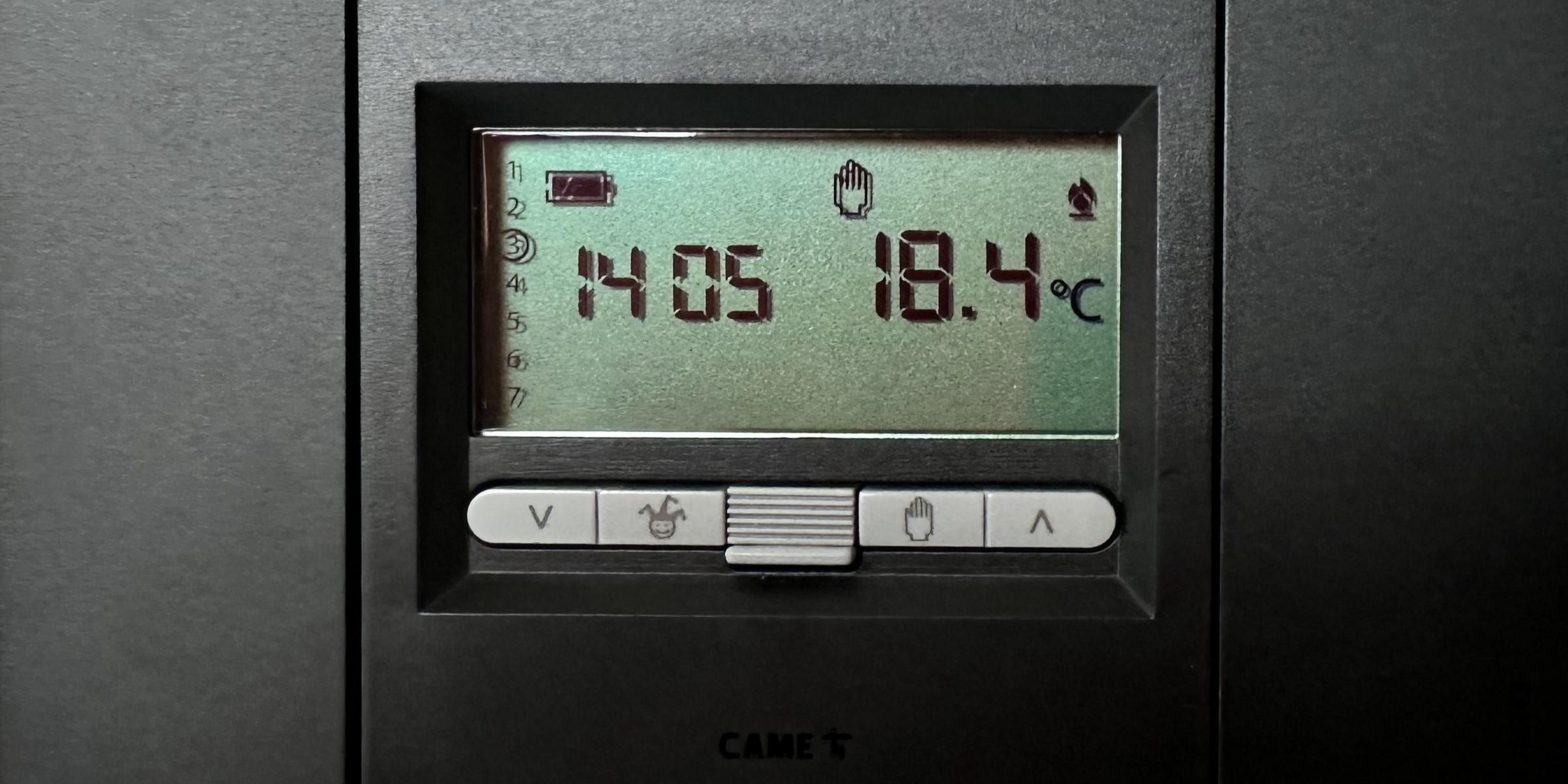 Assicurarsi, inoltre, che la modalità del cronotermostato sia impostato su manuale ovvero devere essere presente sul display la manina, in alto al centro del cronotermostato, attivabile tramite il secondo tasto da destra con il medesimo simbolo.